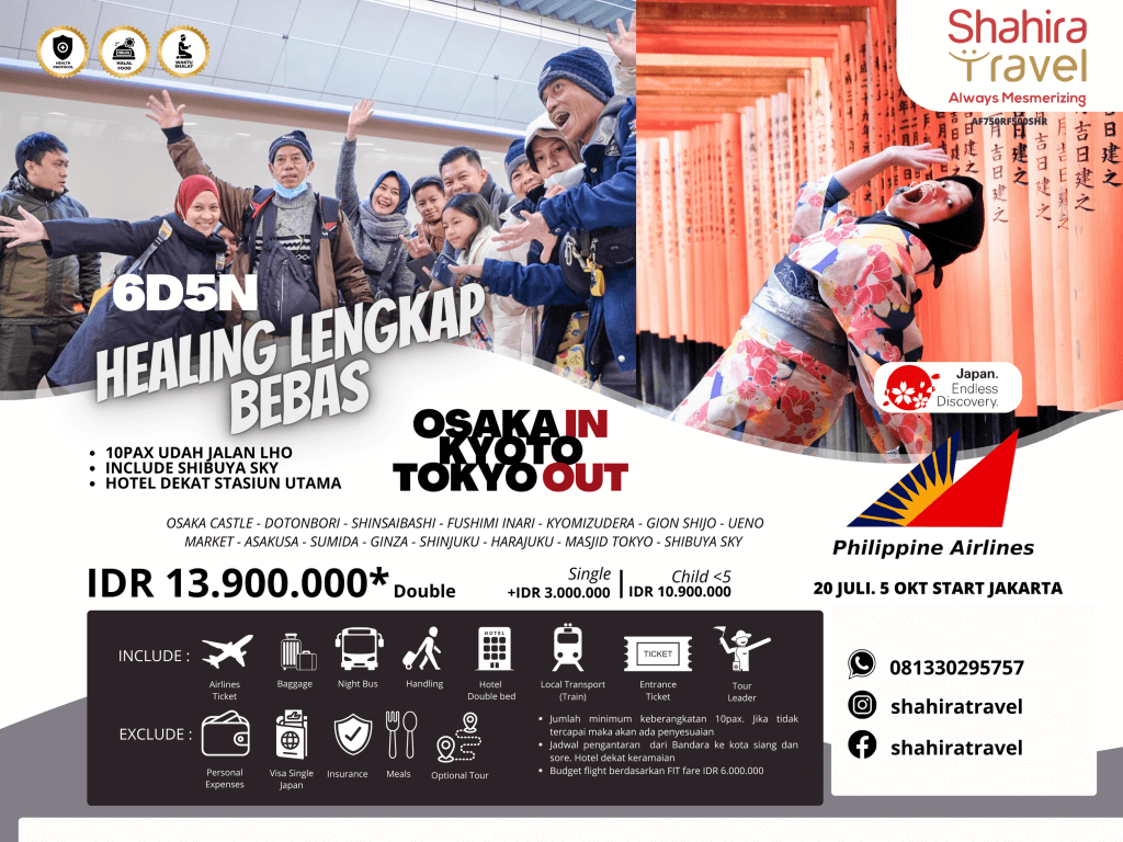 OSAKA CASTLE - DOTONBORI - SHINSAIBASHI - FUSHIMI INARI - KYOMIZUDERA - GION SHIJO - UENO MARKET - ASAKUSA - SUMIDA - GINZA - SHINJUKU - HARAJUKU - MASJID TOKYO - SHIBUYA SKY