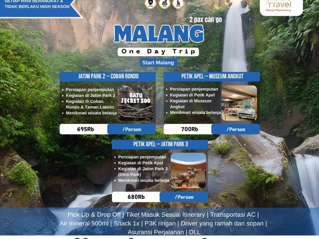 • Harga dapat berubah sewaktu – waktu, mengikuti eskalasi harga BBM, harga tiket masuk, dan lain – lain