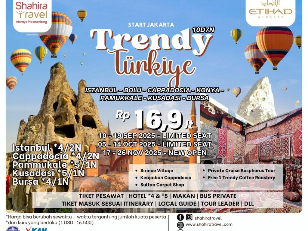 melalui SHAHIRA TRAVEL. Apabila membeli diluar maka akan dikenakan CHARGE sebesar USD 200/pax
