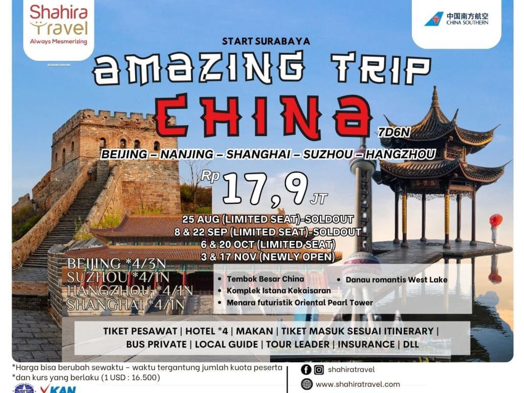 TianAnmen Square, Forbidden City, Herbal Store, Wangfujing Street (Shopping time), Juyongguan Great Wall, Olympic Stadium Bird Nest & water cube (photostop), Yandaixie Street, Baoshutang Store, Qilishantang Historical Street, Pingjiang Road, Jinji lake, Gate Of Orient, Lotus Garden, Silk Factory Market, West Lake + Cruise, Hefang Old Street, Dragon Well Tea Plantation, Nanjing Road, Oriental TV Pearl Tower (photostop), Jewelry Shop, Wukang Road.