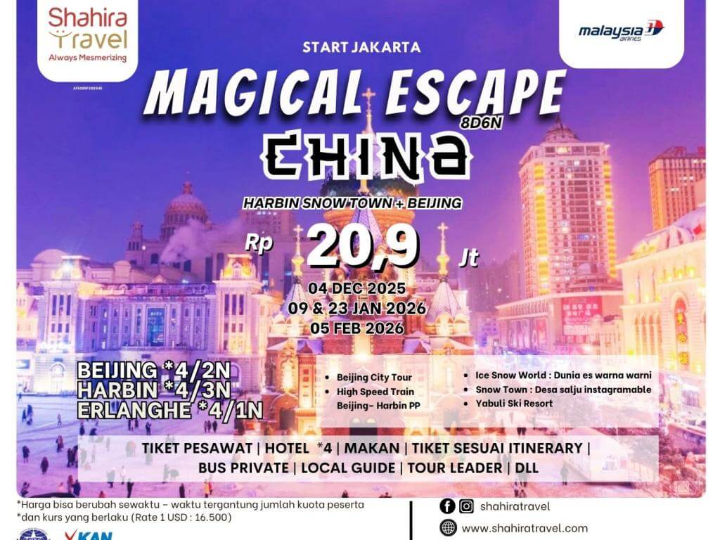 - Group akan diberangkatkan apabila mencapai jumlah minimum peserta. Jika kurang dari minimum peserta, Shahira Travel berhak melakukan penyesuaian harga tour / mengganti tanggal keberangkatan / membatalkan keberangkatan.