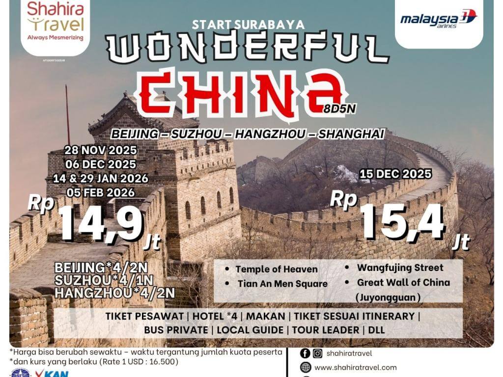 - Daftar hotel dan jadwal tour dapat berubah tanpa mengurangi isi daripada tour