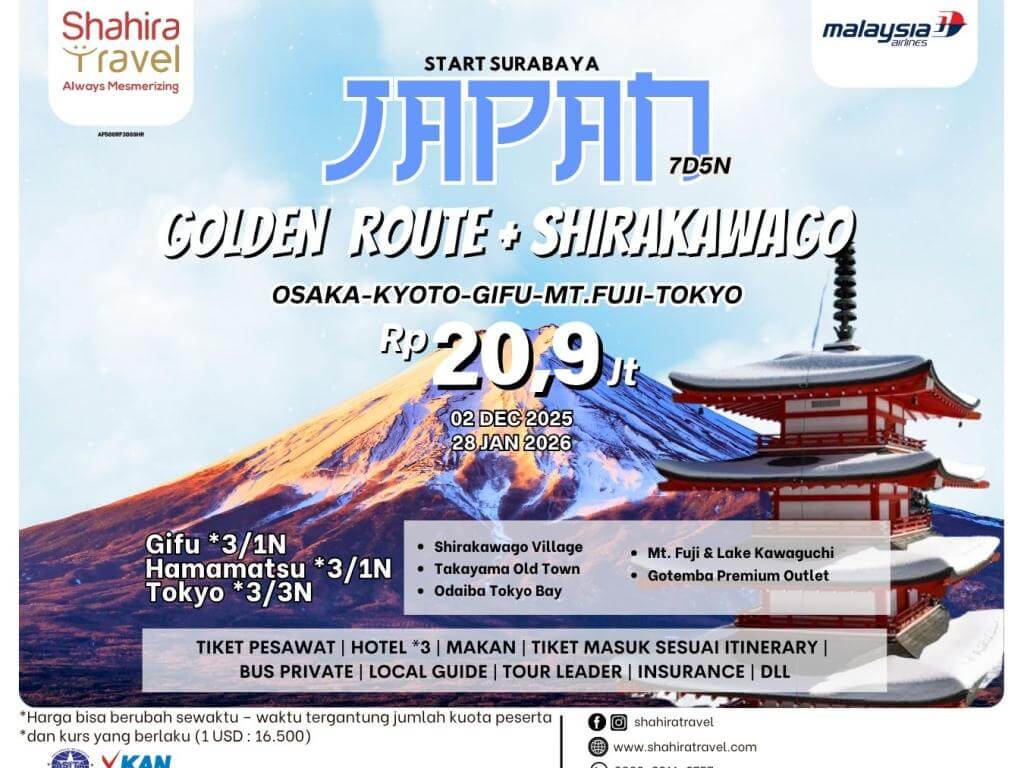- Daftar hotel dan jadwal tour dapat berubah tanpa mengurangi isi daripada tour