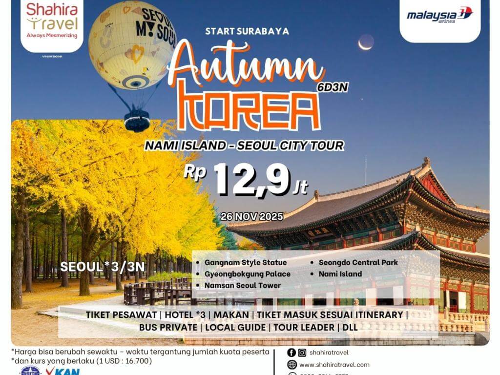 - Daftar hotel dan jadwal tour dapat berubah tanpa mengurangi isi daripada tour