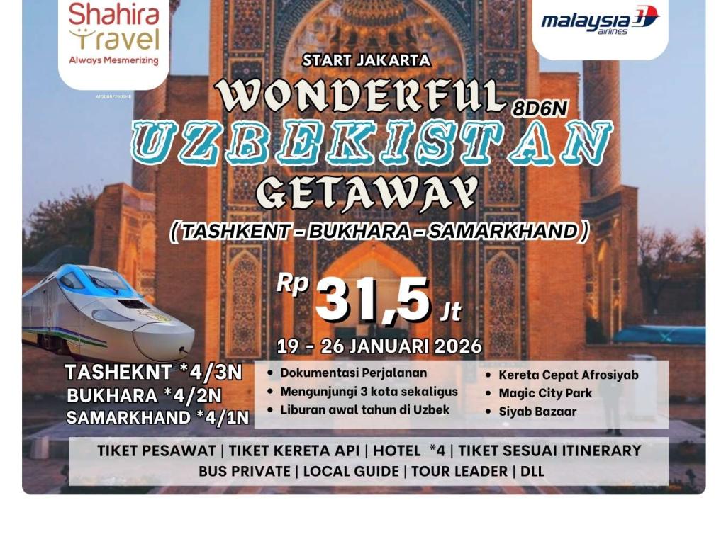 8D6N WONDERFULE UZBEKISTAN GET AWAY