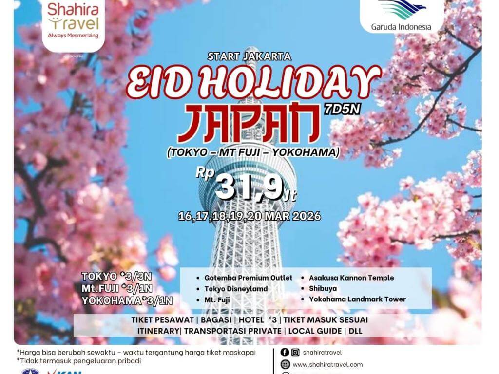 - Tiket International Jakarta-Tokyo-Jakarta dengan Garuda Indonesia, Economy termasuk seluruh taxes(Tiket Grup Fixed Date & No Extend)