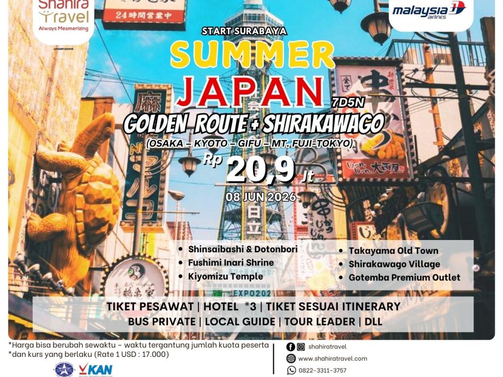 7D5N JAPAN GOLDEN ROUTE + SHIRAKAWAGO (SUMMER)