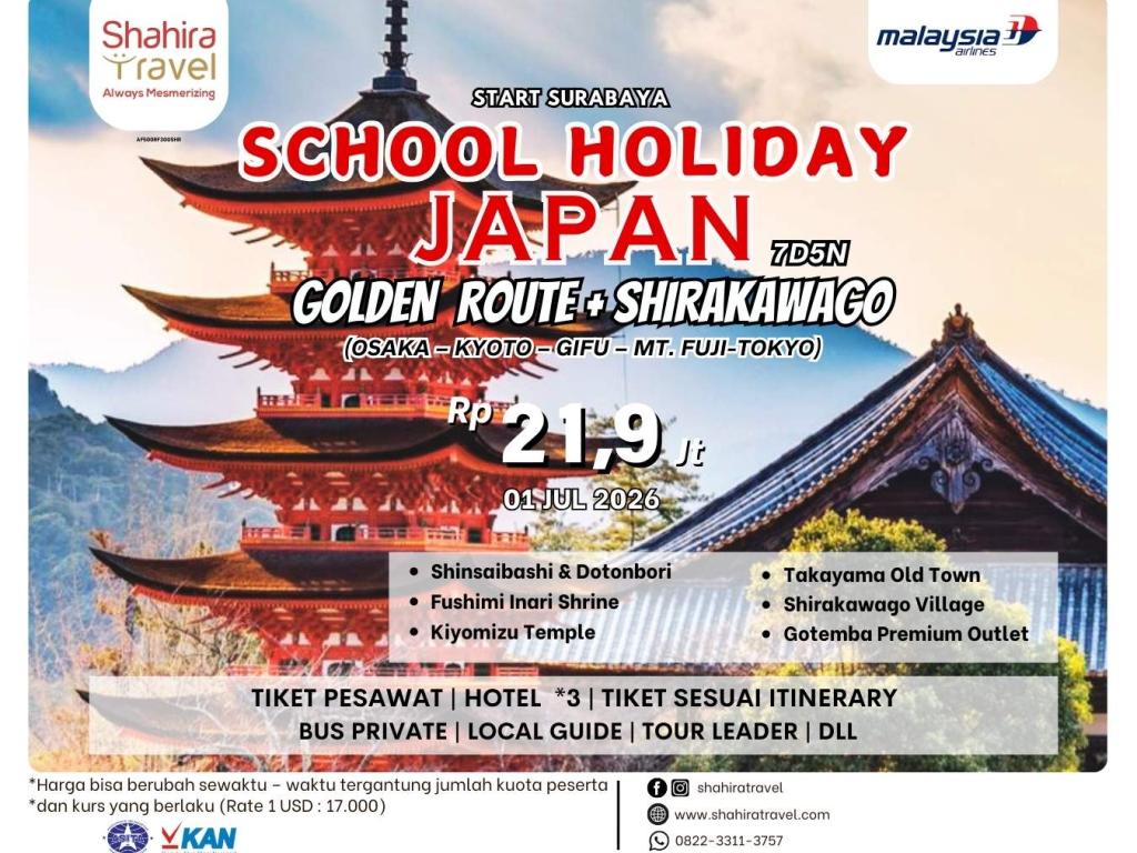7D5N JAPAN GOLDEN ROUTE + SHIRAKAWAGO (SCHOOL HOLIDAY)
