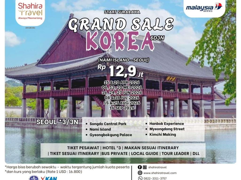 - Group akan diberangkatkan apabila mencapai jumlah minimum peserta. Jika kurang dari minimum peserta, Shahira Travel berhak melakukan penyesuaian harga tour / mengganti tanggal keberangkatan / membatalkan keberangkatan.