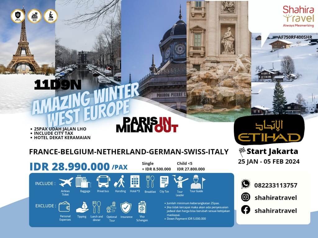 - Tiket Pesawat Kelas Ekonomi Etihad Airways CGK- CDG-MXP-CGK PP