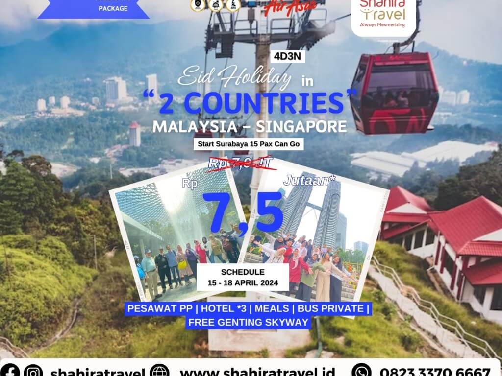 Gedung Merah, Jonker Walk, Bukit Melaka, Kapal Portugis, Masjid Selat, Shopping at Bugis Street, Masjid Sultan, Jewel Changi, Merlion Park, Garden By The Bay, Genting Highland, Batu Caves, KLCC Twin Tower, Istana Negara, Lapangan Merdeka, River of Live, Bukit Bintang