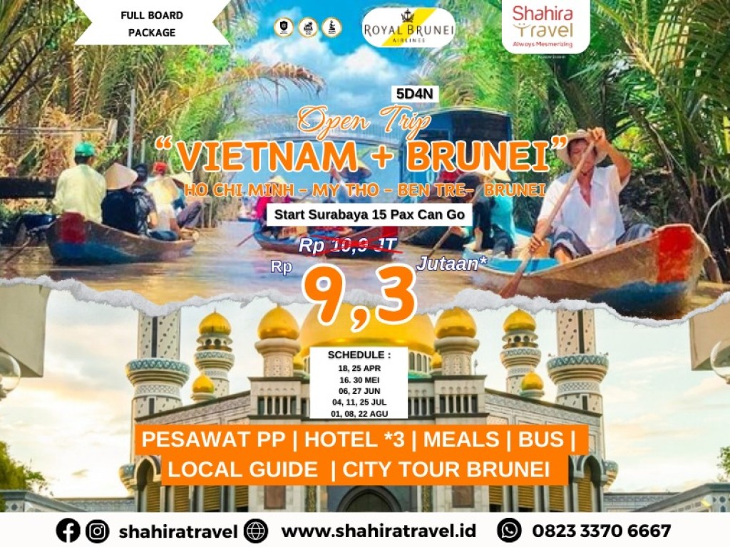 Brunei Darussalam, Arrival Ho Chi Minh, Masjid Jamia Al-Musulman Central Saigon, Cu Chi Tunnel Tour, Masjid Jamia Al-Musulman Central Saigon, Bao Dinh Canal, My Tho Wholesale Fruit Market , Tortoise Island, Tan Thach Natural Canal, Thoi Son Island, Flower Garden